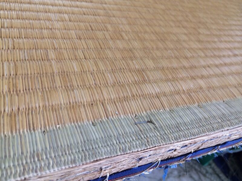 これは以前畳を作った時に、解れ止めをする前の畳表からイグサが抜け落ちたのをそのままに畳表を張った状態です。