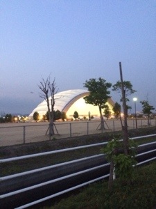 近づいてもあまり大きくはないこじんまりとした岡山ドーム!