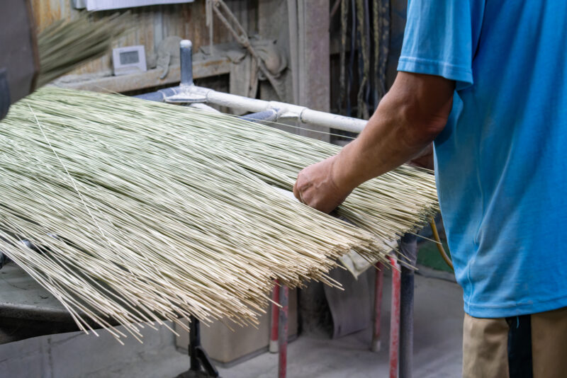 い草は収穫後に選別作業を行い、「長さ」「太さ」「色」などを基準に等級分けされます。