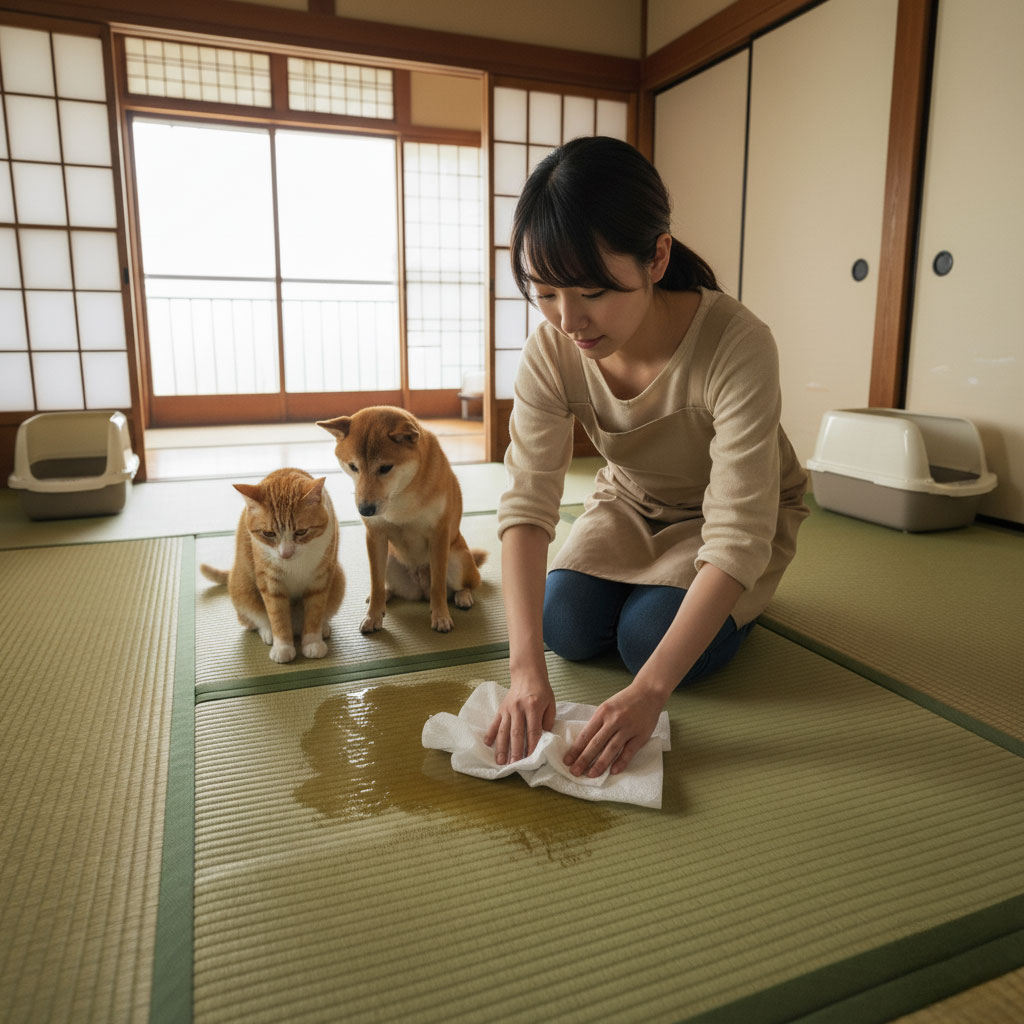 この記事では、プロの畳職人の視点から、ご家庭にあるものでできる実践的な「おしっこの消臭・お掃除テクニック」を徹底解説します。犬猫などのペットや小さなお子さんがいるご家庭の方は、ぜひ参考にしてくださいね!