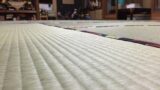 これには、畳床(たたみどこ)と呼ばれる芯材を、採寸のサイズから畳表の厚み分を引いてカットし、その上に畳表(たたみおもて)を張り縫い付けます。